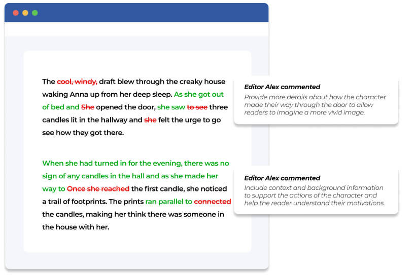 From overhauling text to fine-tuning the structure, our developmental editor can dive into the process of ensuring your final file is a well-structured and cohesive piece of work that flows smoothly.